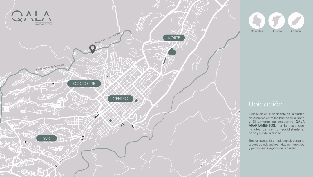 Observaciones Generales: Proyecto nuevo, próximo a iniciar construcción, ubicado al Occidente de la ciudad, en uno de los barrios mas tradicionales de Armenia, sector tranquilo y seguro, de alta valorización ya que se proyecta la Avenida de Occidente a 300 mts del proyecto.